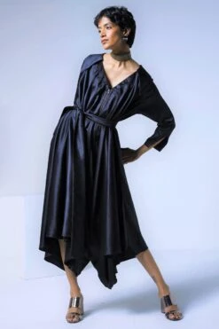 If you’re looking for a head-turning statement-making outfit, this is the jumpsuit for you. This midnight jumpsuit is a relaxed fit jumpsuit in pleated metallic fabric. It features a pleated detail in the front & a concealed zip.