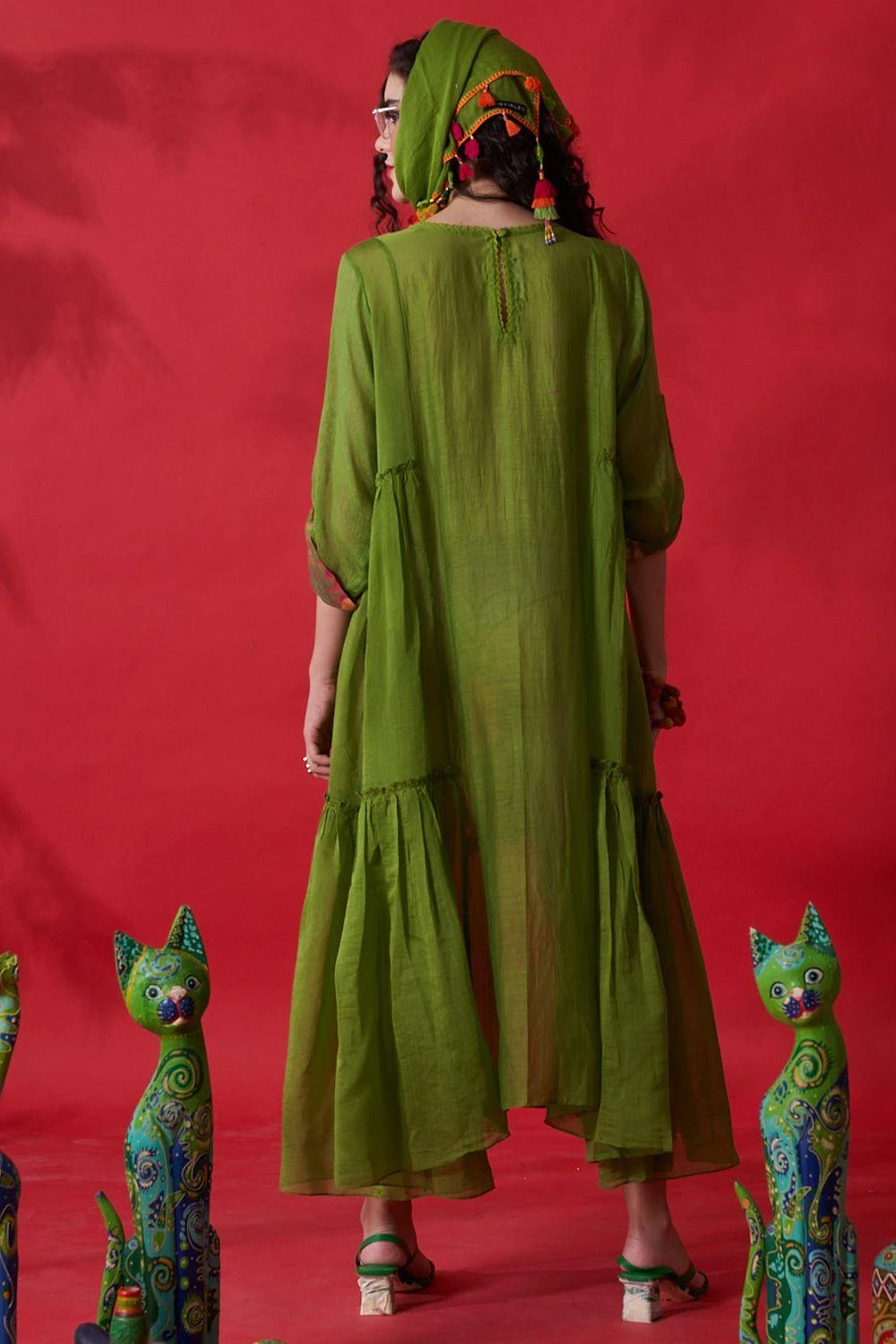 The perfect amalgamation of style & comfort, this dress is perfect for a day out. Crafted in chanderi silk, this flared dress features a round neck. Style this dress with a pair of statement earrings to complete the look.