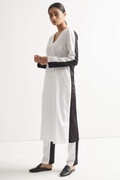 Experience the essence of elegance with this kurta. Impeccably adorned with cutwork & intricate beadwork, this piece redefines opulence. Pair it with coordinating pants from the collection to complete the set.