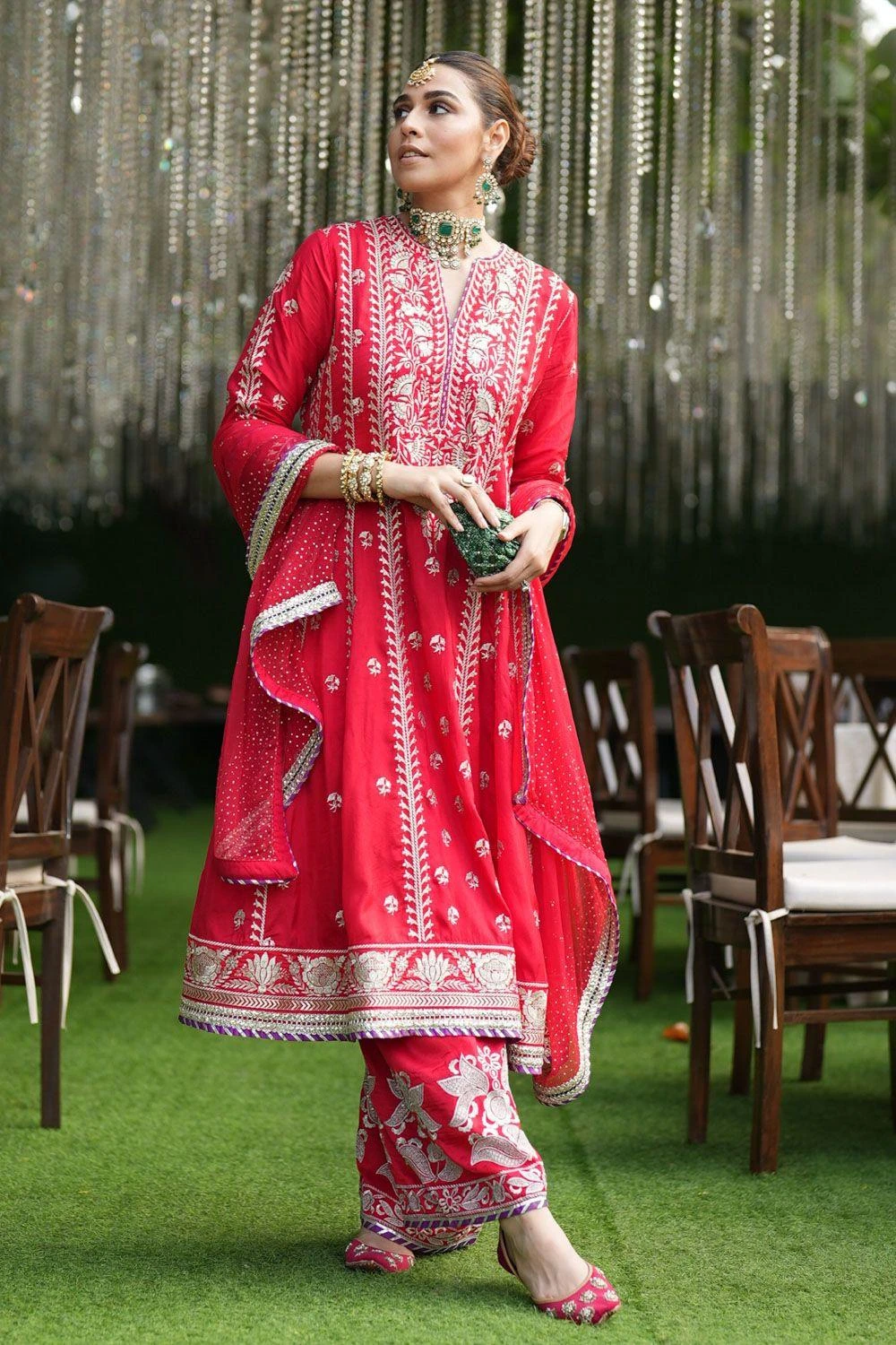 In the symphony of elegance, the Rouge Anarkali Set takes center stageùa masterpiece in tussar & lycra. With flowing kalis, a palazzo & chiffon dupatta, this ensemble paints a picture of grace. An ode to timeless sophistication perfect for occasions.