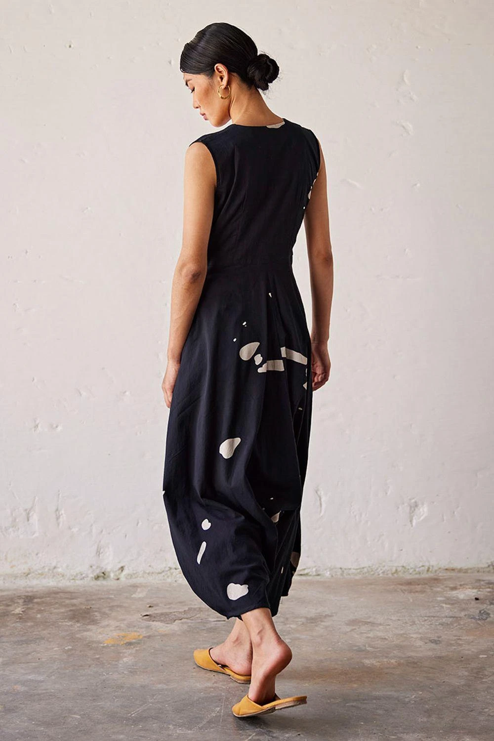Elevate your elegance with this black terracotta print mul jumpsuit. Boasting a concealed zipper opening and a chic V neckline, it’s a symbol of effortless sophistication and modern style.
