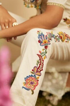 Elevate your summer wardrobe with this steel blue linen jumpsuit. Its V neckline, back zip opening, and flared bottoms exude timeless elegance, promising a chic and sophisticated look.