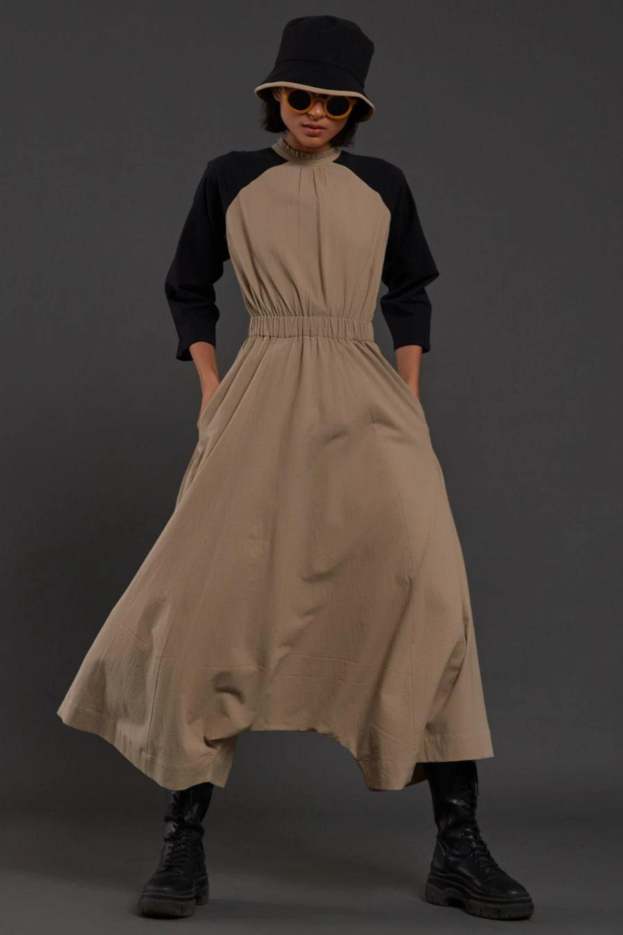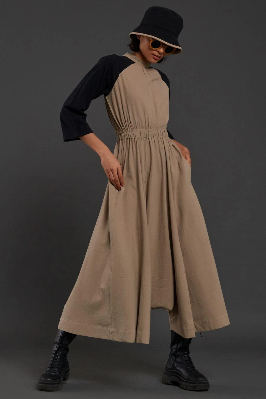 From Your Work Desk To The Brunch Table & From Lounging At Home To Catching Flights, You Can Always Count On This Jumpsuit. Crafted In Cotton, This Raglan Sphara Jumpsuit Features Contrast Colour Sleeves, Ruffled Collar And Side Pockets.