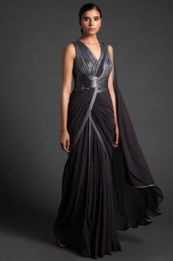 Taking inspiration from the works of Itchiku Kubota & Jeremy Gardiner, this collection rediscovers the six yard drape as a canvas & reimagines it as a second skin. Engineered in Jamdani & Bandhani this sari comes with an unstitched blouse piece.