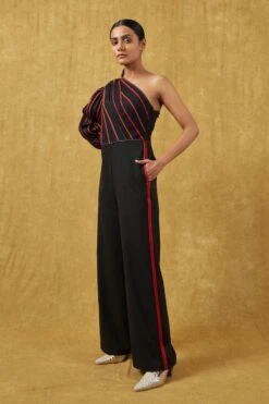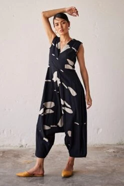 Indulge in chic flair with the Zinnia Frill Sleeve Romper. Its captivating design, featuring geometric hand embellishments, adds a touch of playfulness to your look. Add a pair of dangler earrings to complete the look.