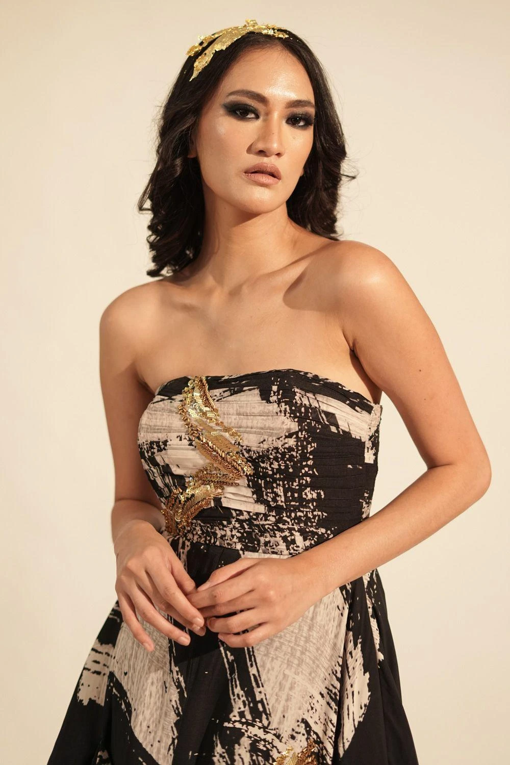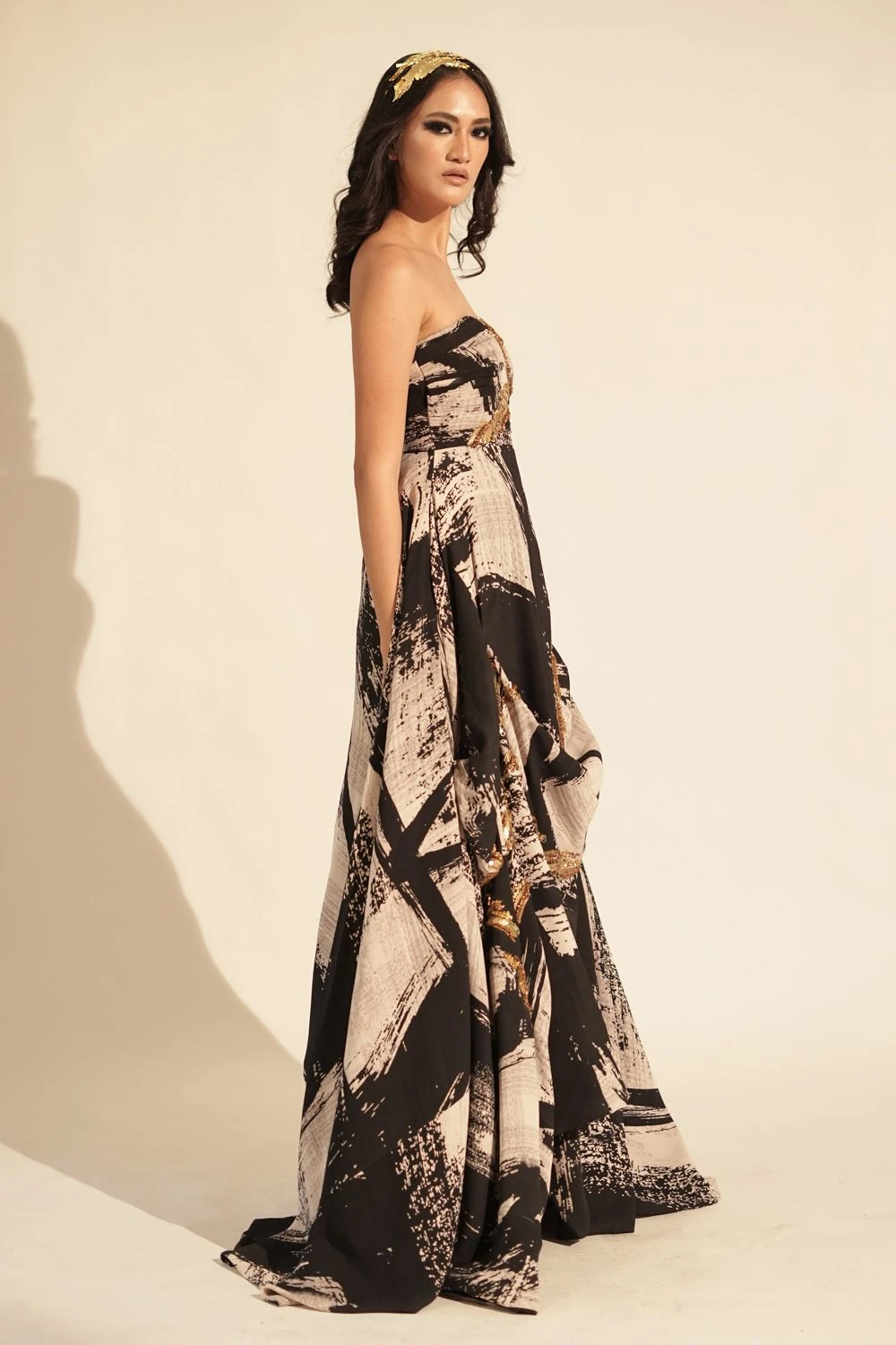 Elevate your style with this black & white stroke print jumpsuit. It’s a fusion of chic and sophistication, making a bold statement in monochrome elegance.