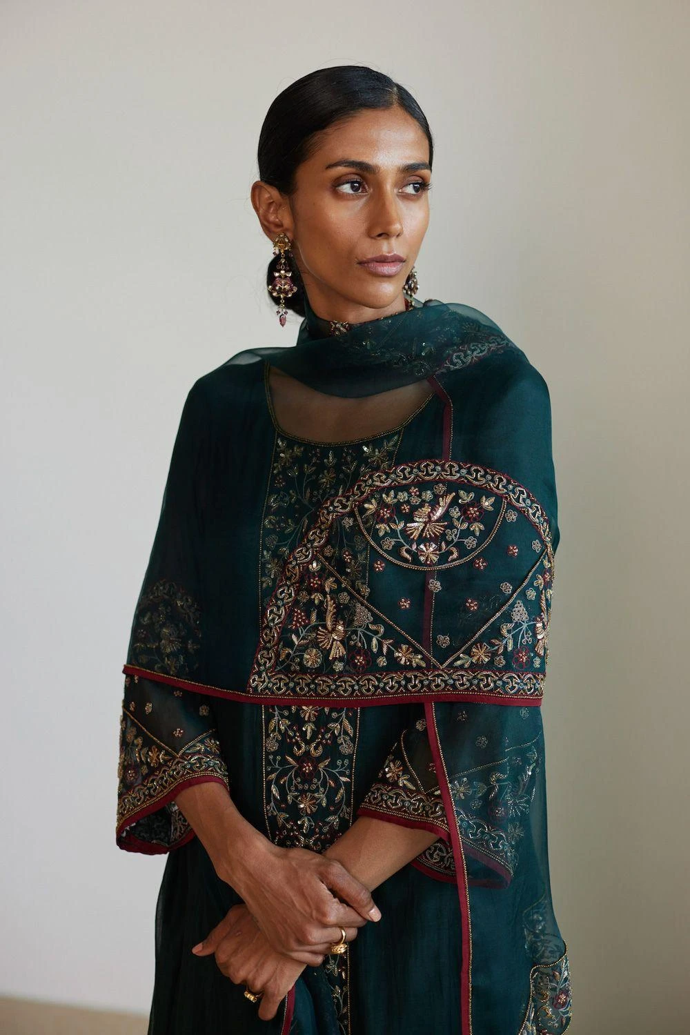 Wrap yourself in the exquisite elegance of this Green Adree Stole, a versatile accessory that effortlessly elevates your style. Layer it over the Green Adree Kurta Set from the collection to complete the set.