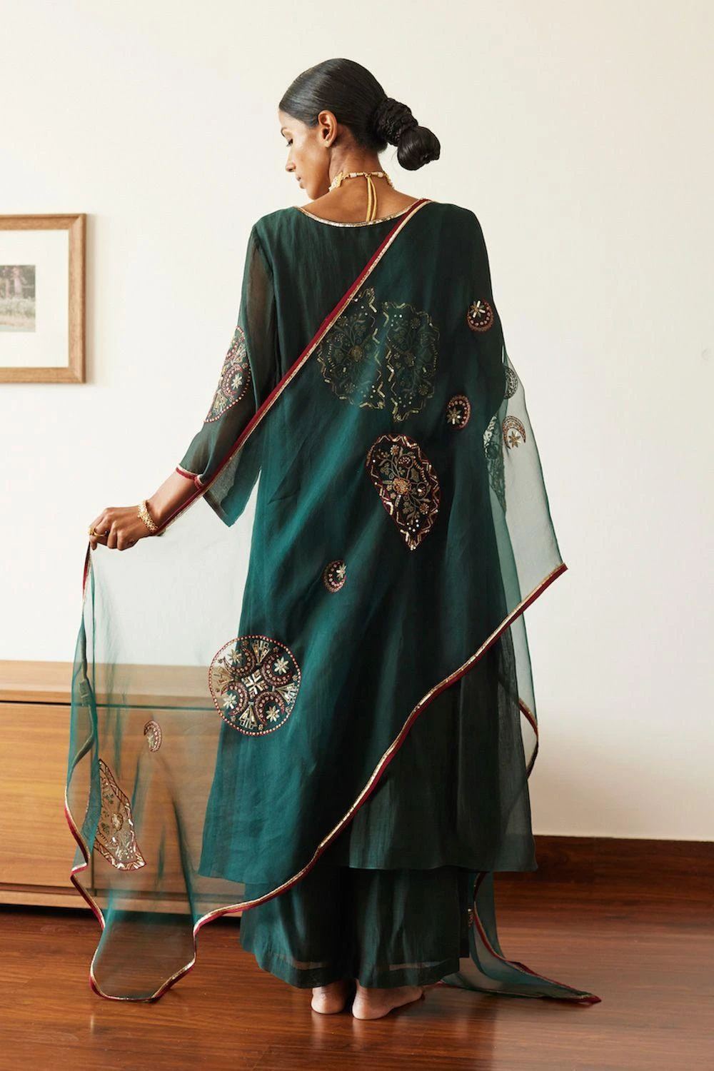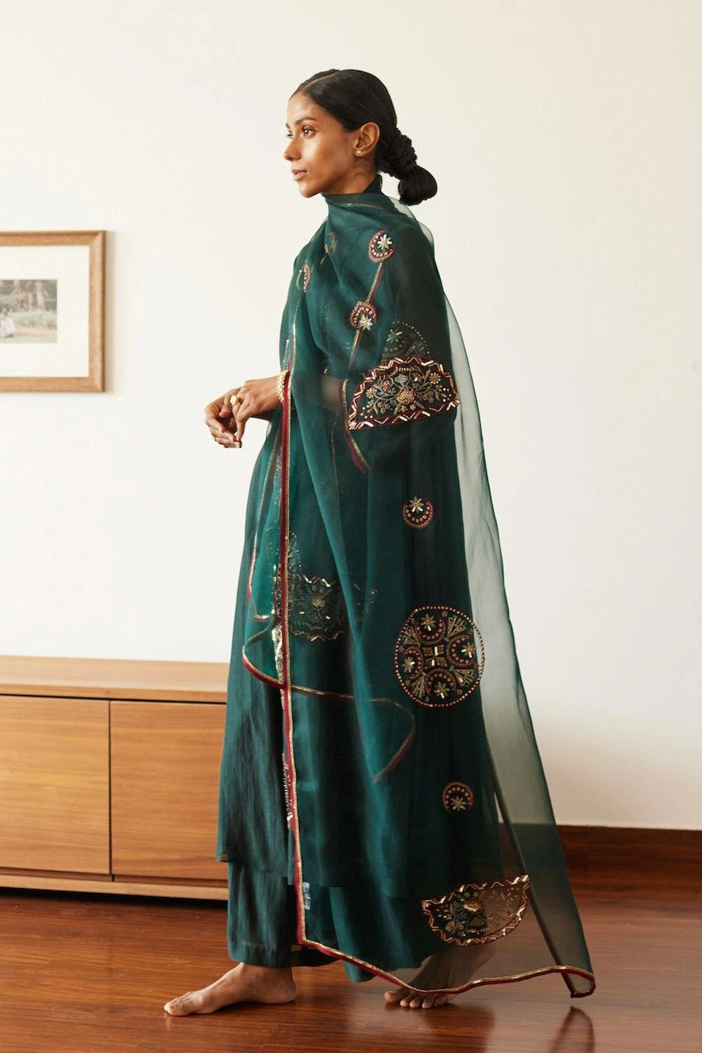 Wrap yourself in the exquisite elegance of this Green Shashi Stole, a versatile accessory that effortlessly elevates your style. Layer it over the Green Shashi Kurta Set from the collection to complete the set.