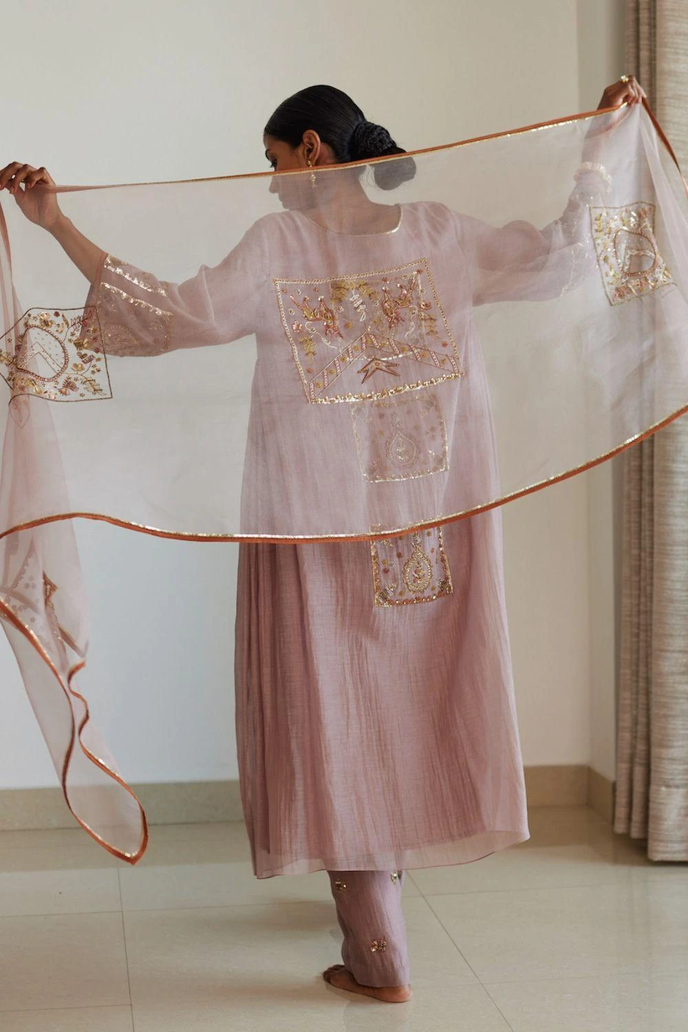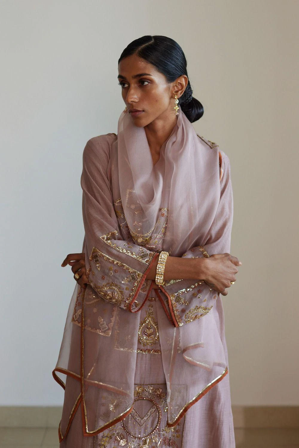 Wrap yourself in the exquisite elegance of this Grey Akaari Stole, a versatile accessory that effortlessly elevates your style. Layer it over the Grey Akaari Kurta Set from the collection to complete the set.