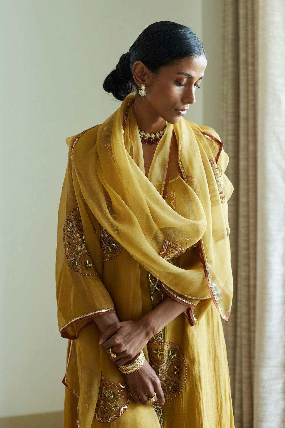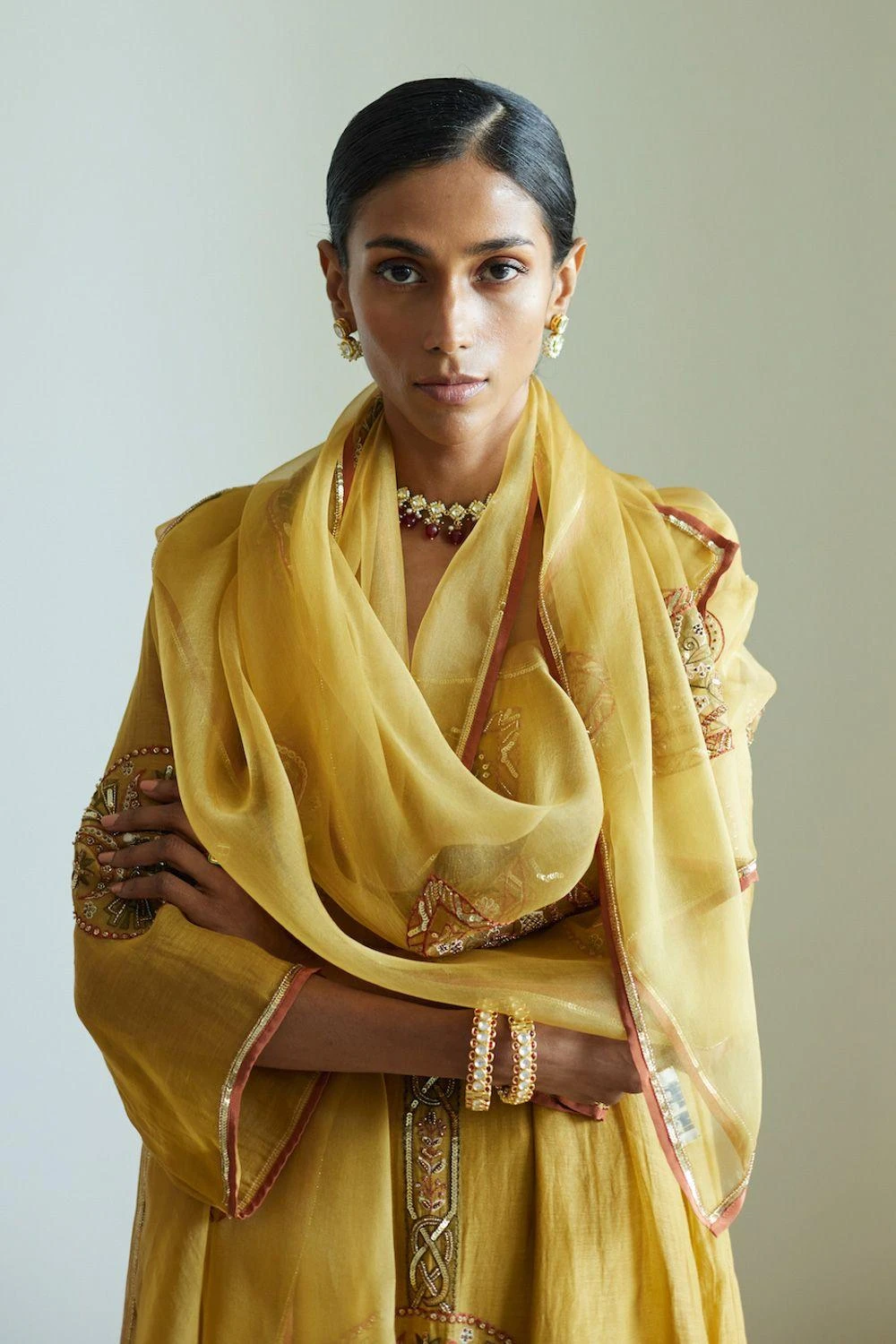 Wrap yourself in the exquisite elegance of this Yellow Shashi Stole, a versatile accessory that effortlessly elevates your style. Layer it over the Yellow Shashi Kurta Set from the collection to complete the set.