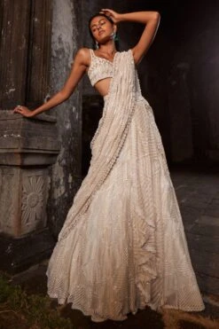Ritika Mirchandani Embroidered Bustier & Draped Lehenga Sari