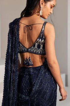 Ritika Mirchandani Navy Blue Pre-stitched Embellished Sari Set