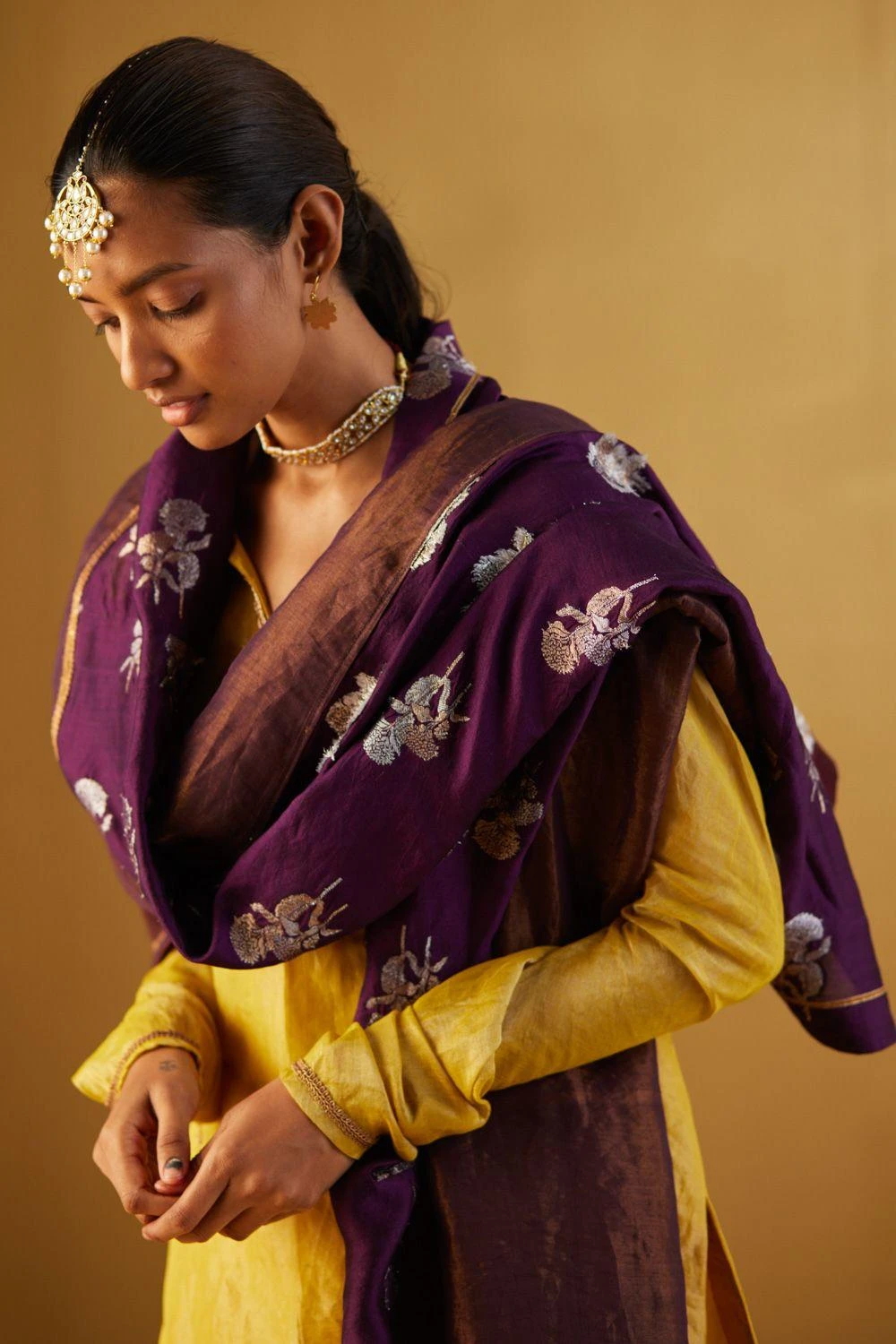 Take your layering game a notch higher with this half brocade & half tissue dupatta. Pair it with a coordinating kurta set from the collection to complete the set.