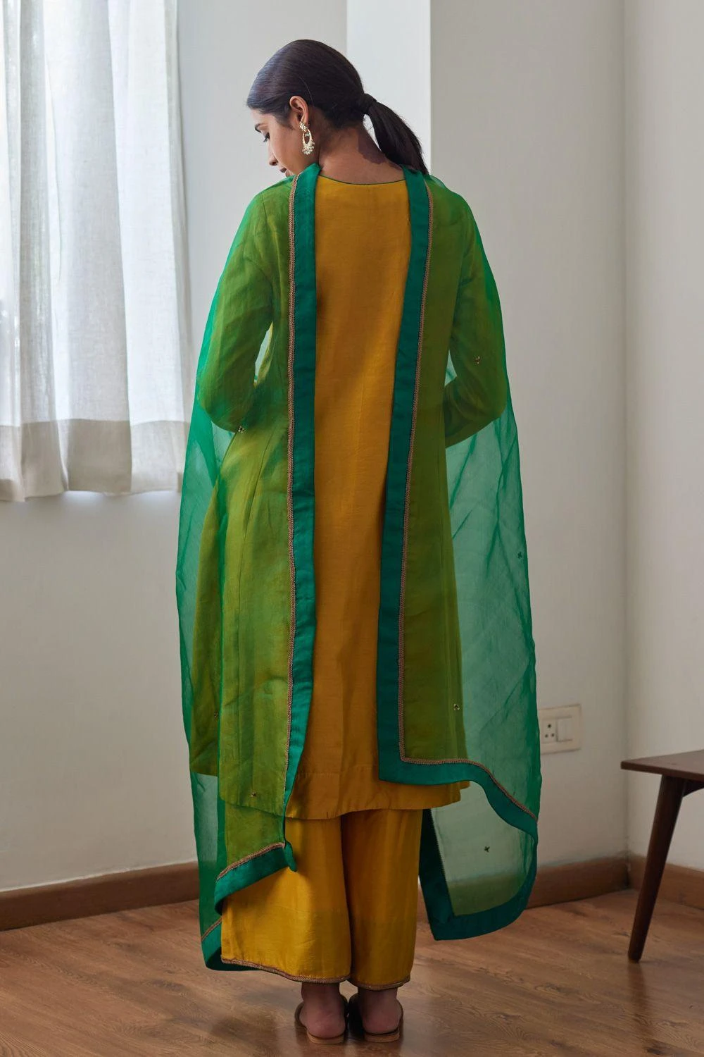 Take your layering game a notch higher with this dupatta. Crafted in organza, this dupatta features hand-done zardosi embellished details. Pair it with a kurta set from the collection to complete the look.