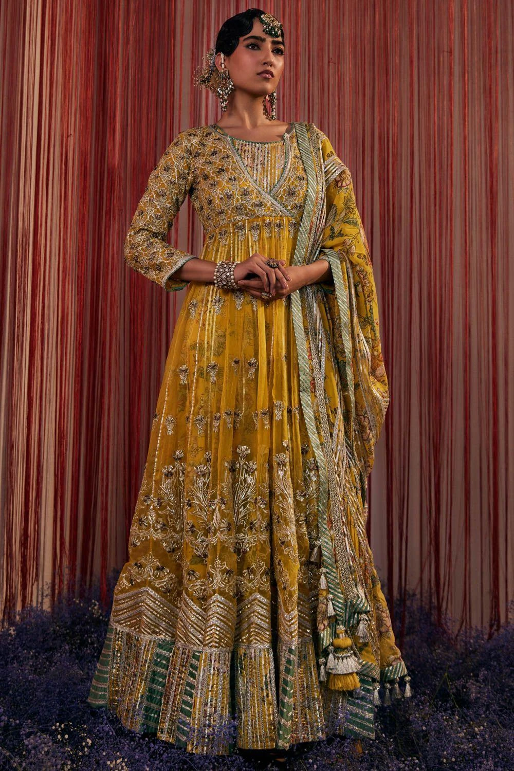 This anarkali set will see you through all kinds of celebrations this festive season. It comes with an intricately and detailed gota, nakshi embroidered anarkali paired with an inner slip and a georgette dupatta with gota lace & handmade tassels.