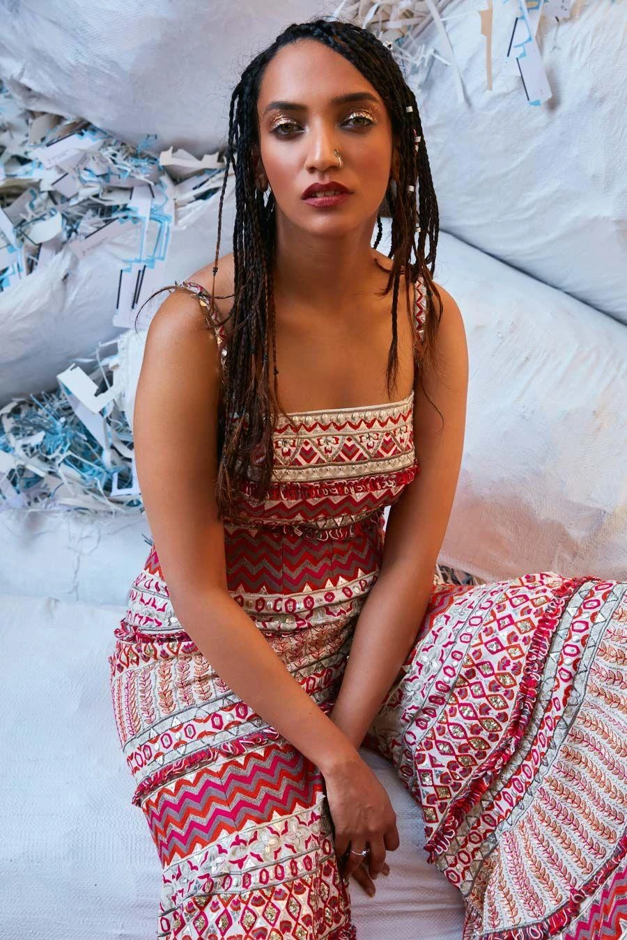 The perfect amalgamation of style & comfort, this jumpsuit is perfect for a day out. Crafted in silk, this multicoloured jumpsuit features a bohemian print.
