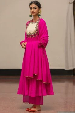 Take your layering game a notch higher with this off white odhani. Crafted in organza, this dupatta features hand embroidered details. Pair it with a kurta set from the collection to complete the set.